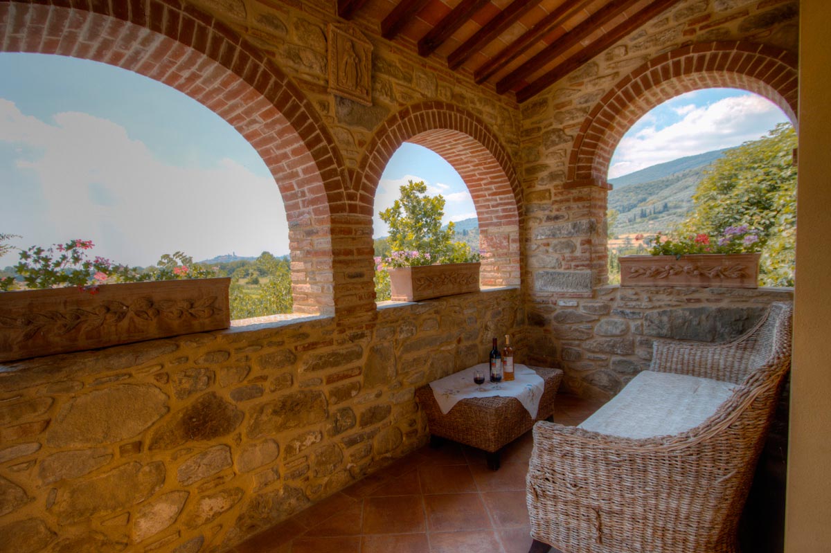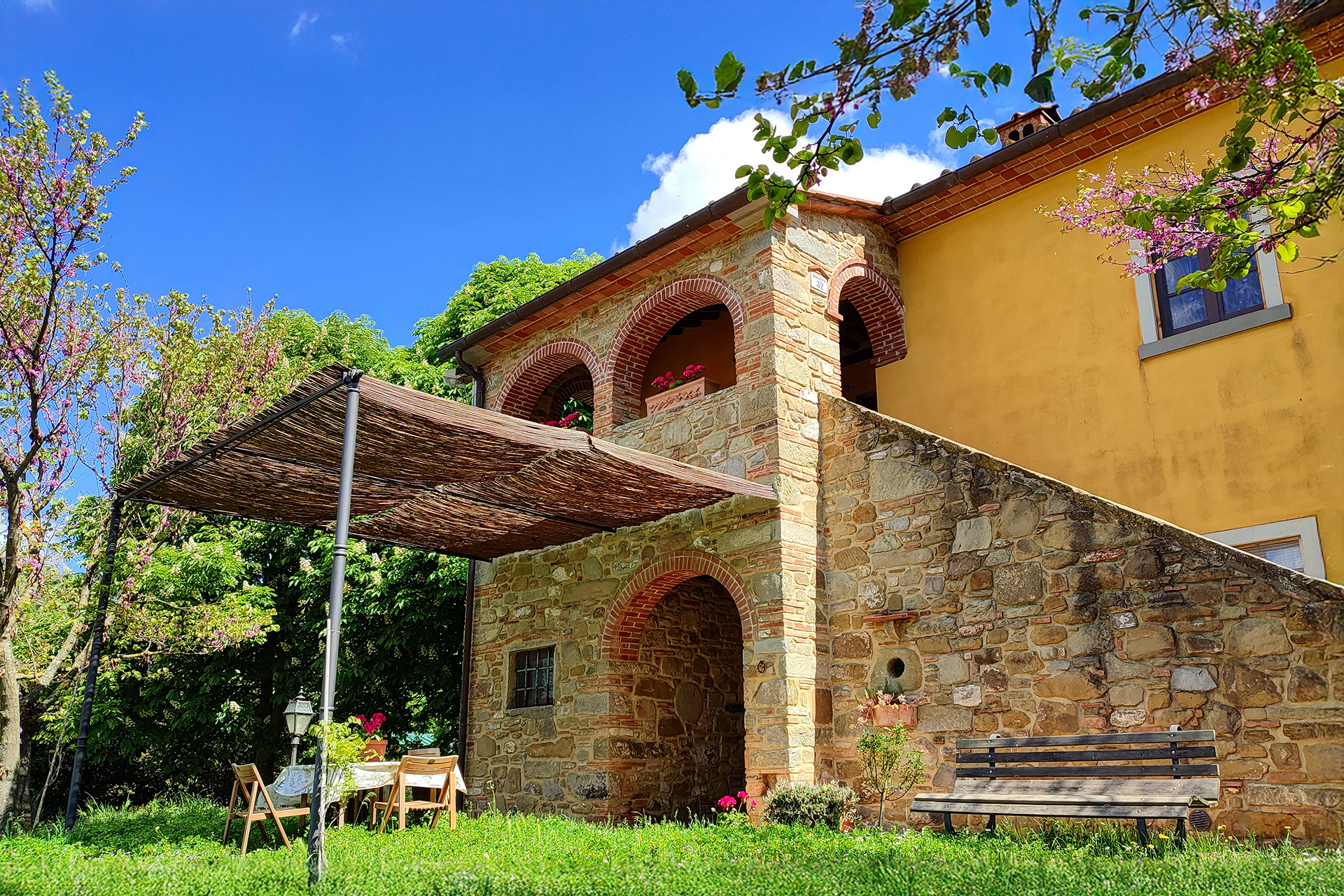La struttura principale è divisa in due piani: al piano superiore, raggiungibile tramite una tipica scala in pietra, si trova una loggetta coperta da cui si può ammirare un bellissimo paesaggio toscano e nello sfondo il paese di Castiglion Fiorentino. Dalla loggia si può accedere a due appartamenti: Melo in Fiore e Glicine Giallo9 (3-5 posti letto ciascuno) di 65 mq; entrambi dispongono di ampia cucina, soggiorno, camera da letto, bagno con doccia e sono arredati con mobili d'epoca.