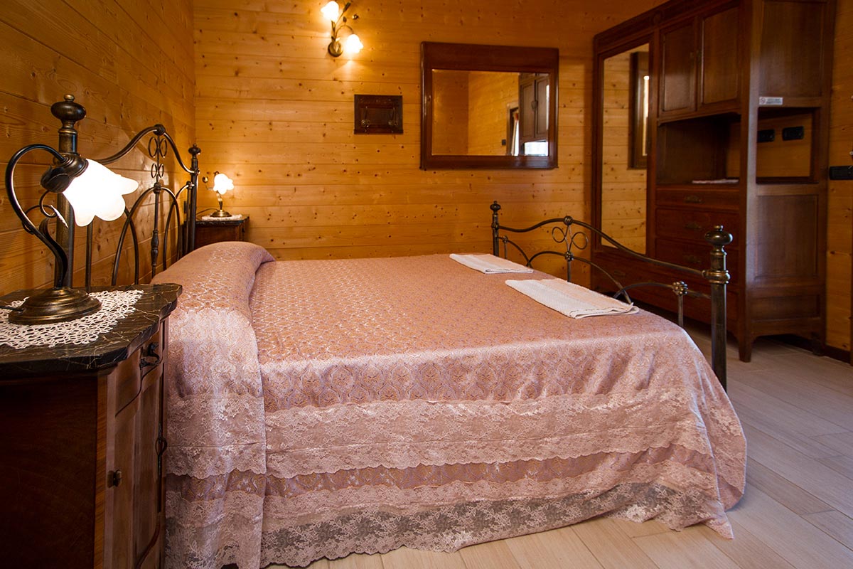 Situata nella struttura biocompatibile in legno vicino alla piscina dell’agriturismo, la camera matrimoniale con bagno privato “Biancospino” dispone di 2 + 1 posti letto.