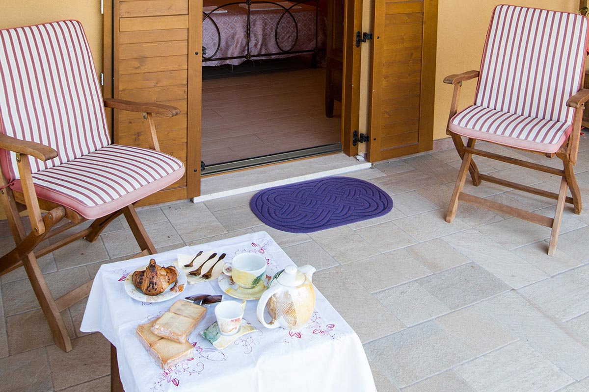 Lo spazio esterno è attrezzato con piccola cucina esterna attrezzata e completa con tavolo e sedie per ammirare i suggestivi tramonti col sole che scende dietro alla collina.